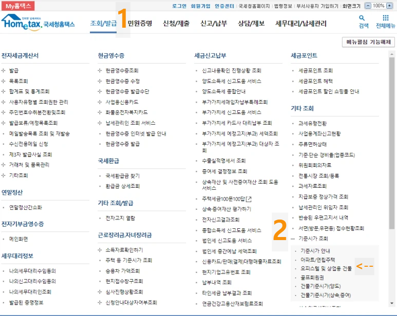 오피스텔 증여세 계산을 위한 기준시가는 홈택스에서 확인할 수 있습니다.
